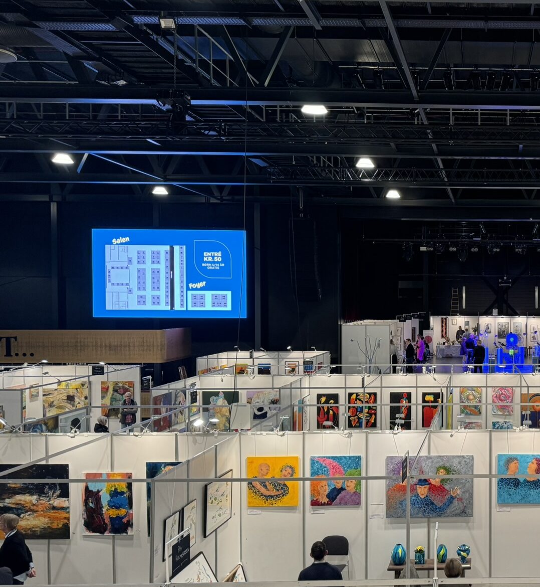 Fremhæv netop DIN stand, dit firma, dit håndværk for alle som gæster Tinghallen i løbet af messen med storskærmsvisning på Tinghallens to storskærme i salen.